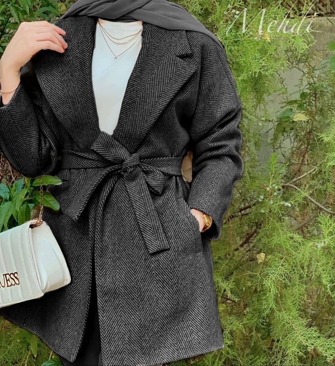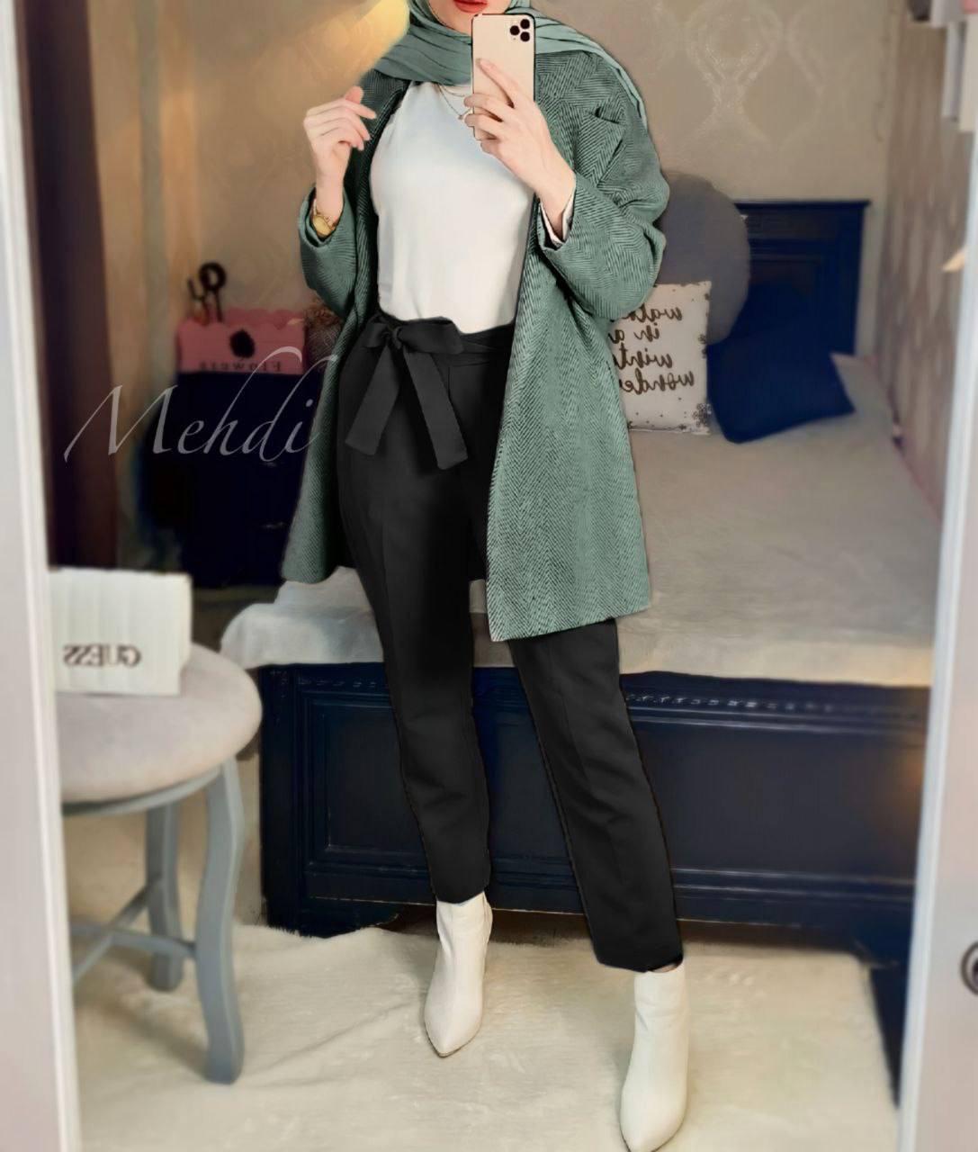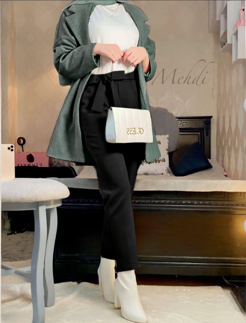 Style - Full style of: Blazer, plain shirt, plain pants, and 2 belts